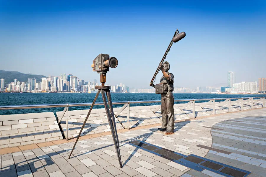 Ngay cạnh cảng là Đại lộ Ngôi sao (Avenue of Stars) – nơi lưu giữ hơn 100 bàn tay in nổi tiếng và tượng đồng của các huyền thoại điện ảnh Hong Kong như Lý Tiểu Long với tư thế nổi bật nhất, Châu Nhuận Phát, Thành Long, Trương Quốc Vinh, Châu Tinh Trì. Đây là nơi du khách thường dừng chân để chụp ảnh và cảm nhận hơi thở của nền điện ảnh Hong Kong một thời vàng son.