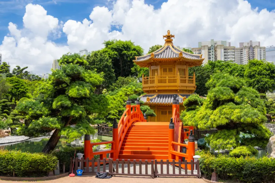 Nằm giữa lòng khu Diamond Hill sầm uất, Vườn Nam Liên hiện ra như một bức tranh thủy mặc sống động giữa thành phố hiện đại. Khu vườn được thiết kế theo phong cách vườn Trung Hoa đời Đường với hồ nước trong xanh, cầu đá cong vút, chùa vàng rực rỡ và rừng thông xanh mát. Không khí nơi đây cực kỳ thanh tịnh, hoàn toàn tách biệt với nhịp sống hối hả bên ngoài.
