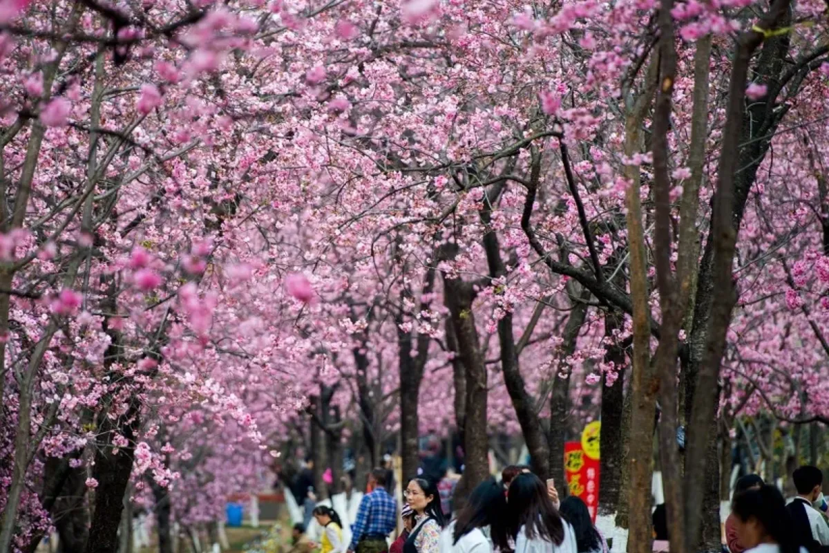 Nhờ khí hậu ôn hòa quanh năm, Côn Minh luôn là nơi đón mùa xuân sớm nhất Trung Quốc với những đợt hoa anh đào rực rỡ ngay từ tháng 2. Đặc trưng của hoa anh đào Côn Minh (đặc biệt là giống anh đào Vân Nam) là sắc hồng đậm hơn, bông hoa to, nở thành từng chùm nặng trĩu. Sắc hoa nồng nàn khiến cả thành phố như bừng tỉnh sau kỳ nghỉ đông dài. Tọa độ "vàng" để ngắm hoa chính là Viên Thông Sơn, các con đường chạy dọc hồ Điền Trì.
