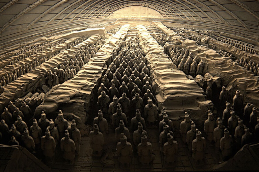 Hiện nay, các nhà khảo cổ đã phát hiện ra hơn 400 hố chôn xung quanh Lăng Mộ Tần Thủy Hoàng. Hố chôn lớn nhất là Hố chôn quân đội, nơi chôn cất hơn 8.000 tượng binh lính, ngựa và xe ngựa bằng đất nung.
