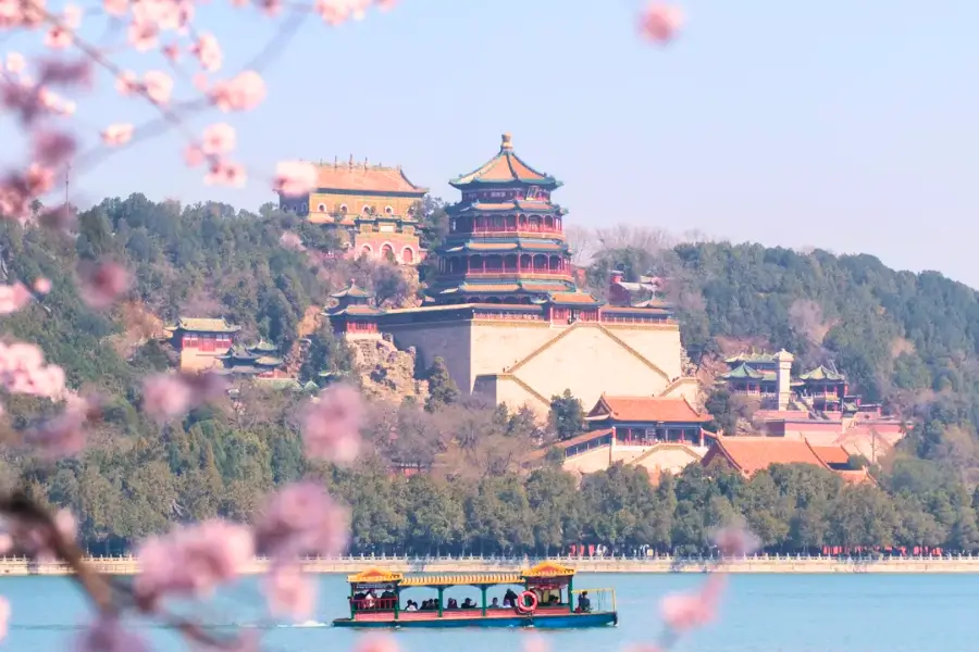 Di Hòa Viên kết hợp hoa anh đào với kiến trúc cung đình cổ kính, tạo khung cảnh thanh lịch và lịch sử. Hoa được trồng dọc hồ Kunming, hành lang dài và các khu vườn.